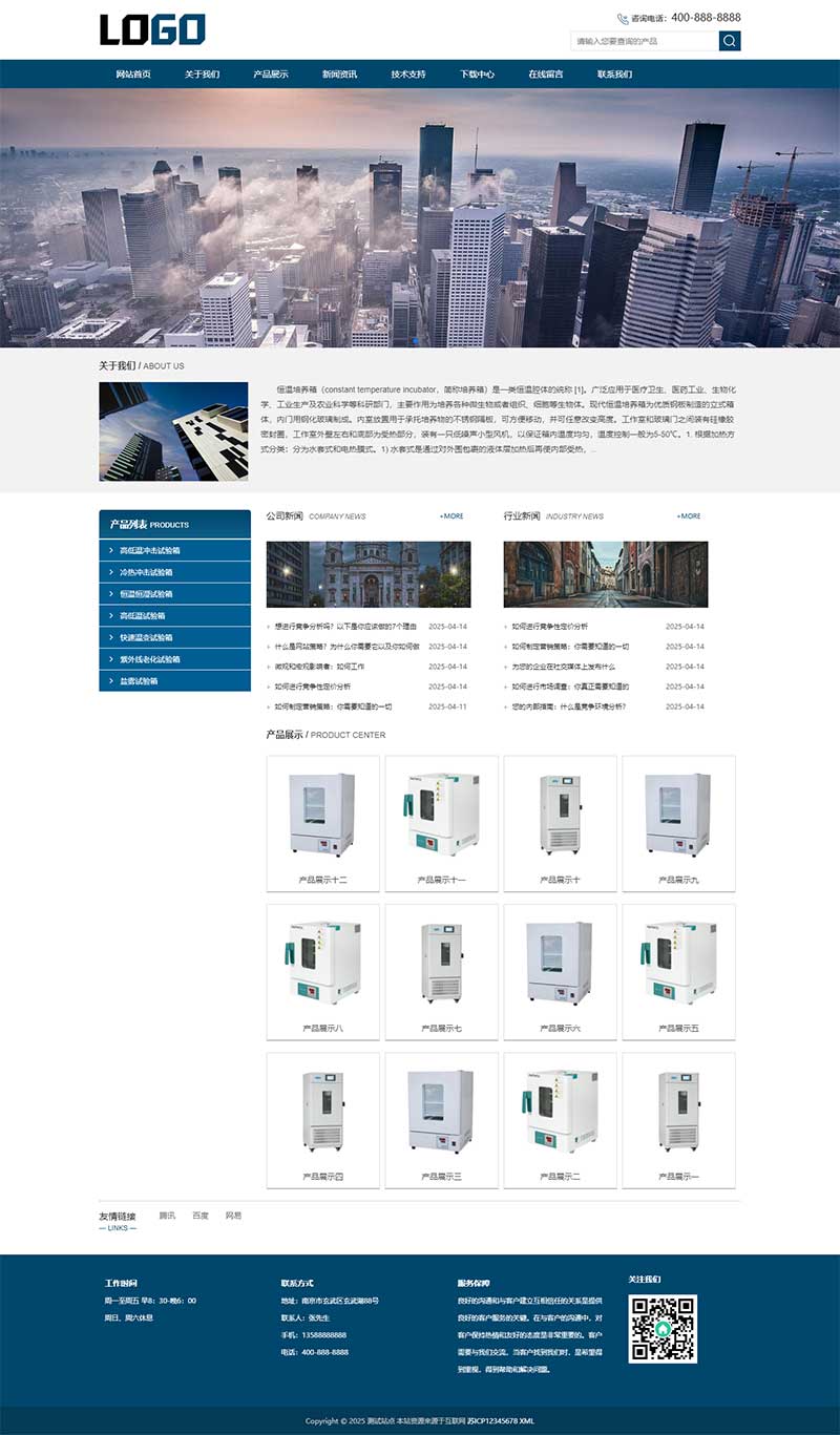 PbootCMS内核开发的网站模板,该模板适用于温培养箱网站、恒湿箱网站等企业,当然其他行业也可以做,只需要把文字图片换成其他行业的即可;