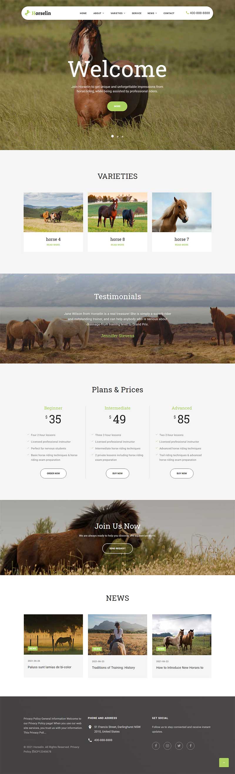 (自适应手机端)养马场畜牧业英文网站pbootcms模板 马匹饲养养殖场网站模板下载