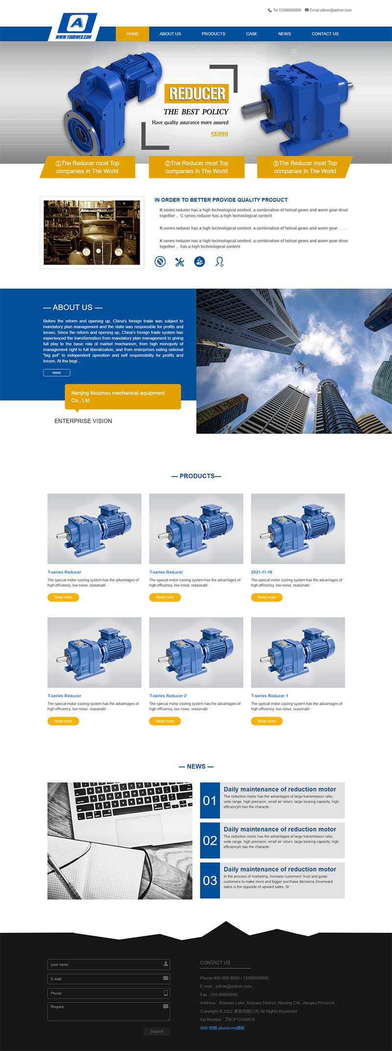 (自适应手机端)减速机械英文外贸公司通用pbootcms网站模板 蓝色外贸企业网站源码下载