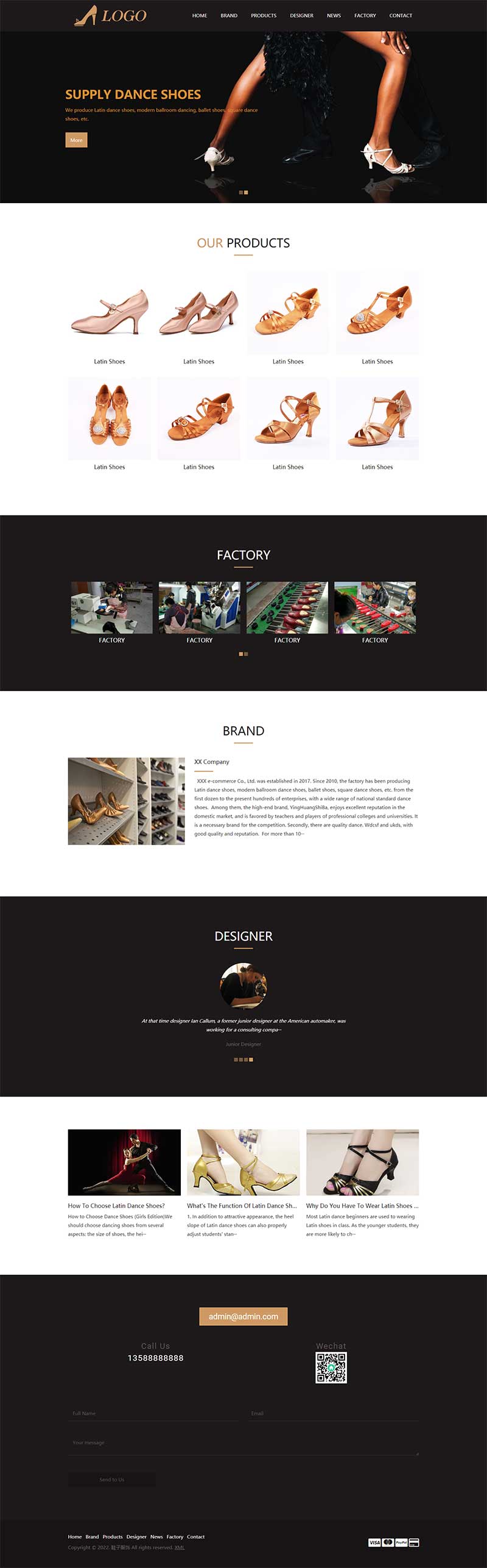 (自适应手机端)英文外贸芭蕾舞鞋网站pbootcms模板 拉丁舞鞋鞋类网站源码下载