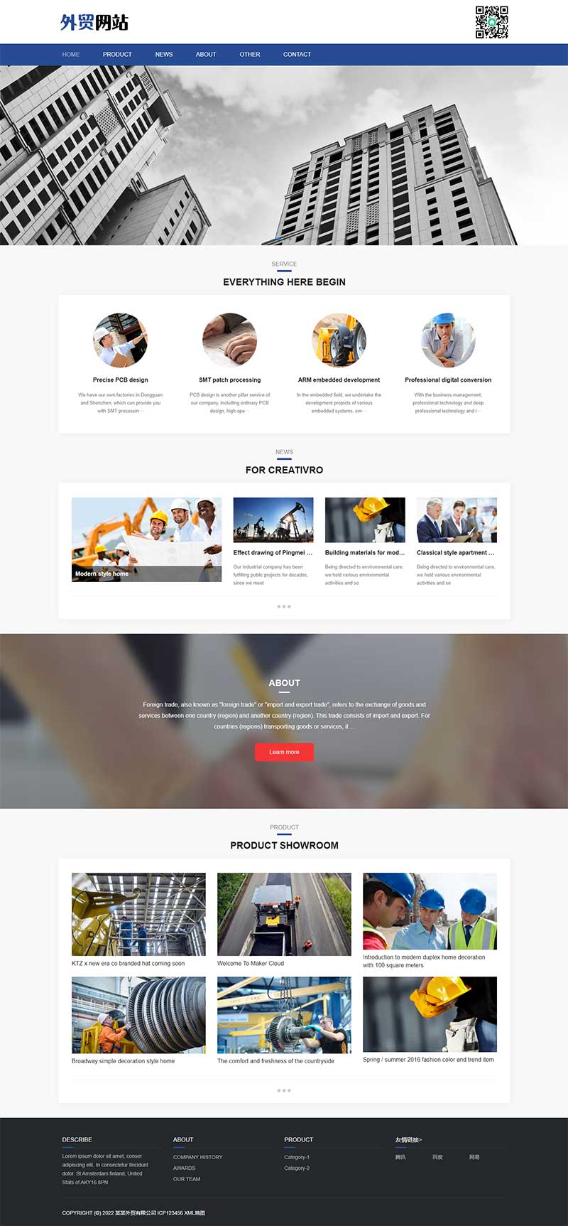 (自适应手机端)pbootcms响应式英文外贸企业网站模板 蓝色高端企业通用外贸网站源码下载