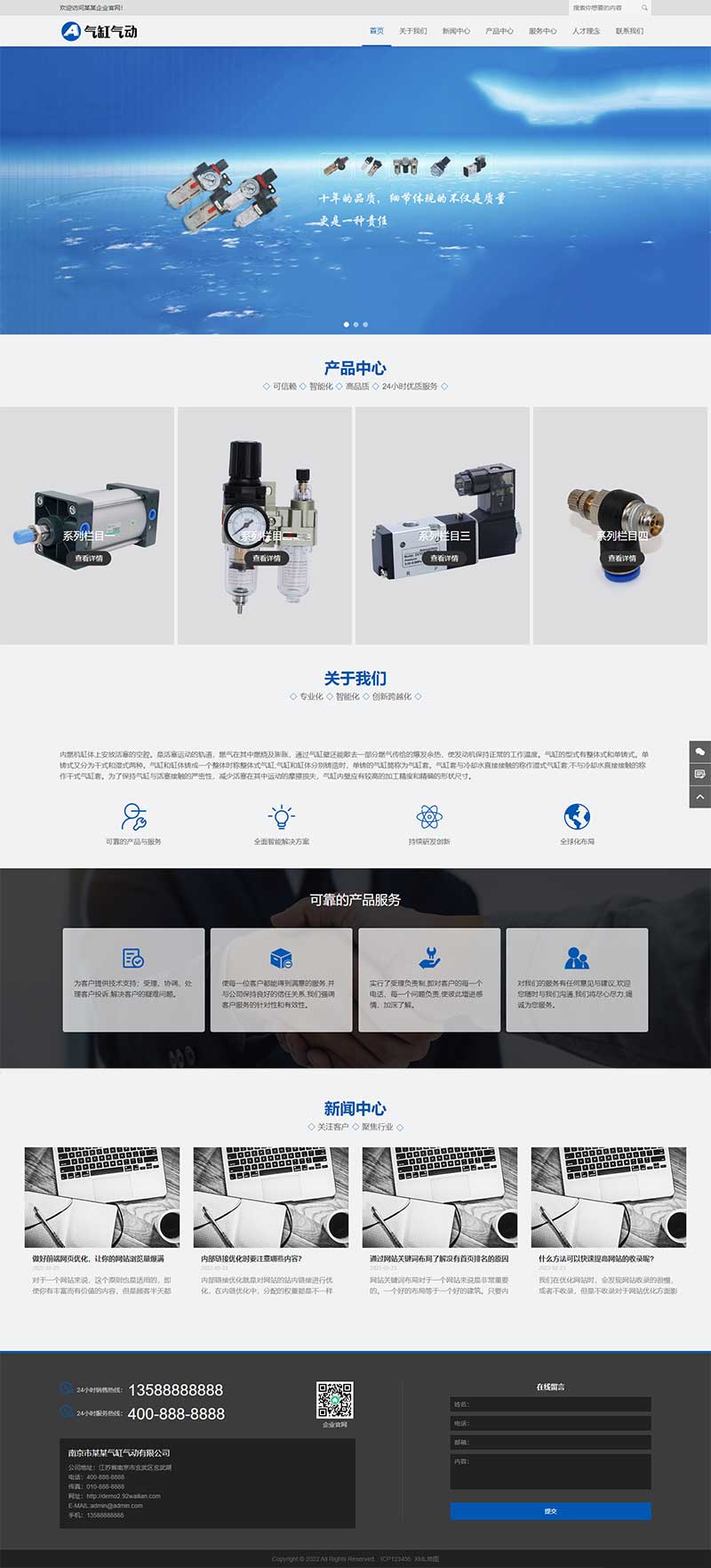 PbootCMS内核开发的网站模板,该模板适用于气缸气动网站、五金元件网站等企业,当然其他行业也可以做,只需要把文字图片换成其他行业的即可;