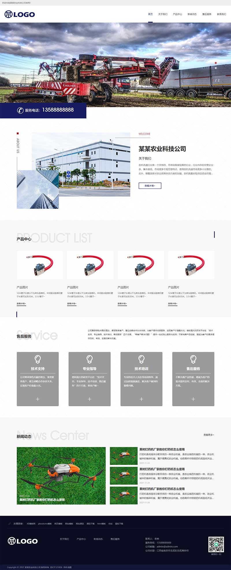 PbootCMS内核开发的网站模板,该模板适用于农业机械网站、农耕设备网站等企业,当然其他行业也可以做,只需要把文字图片换成其他行业的即可;