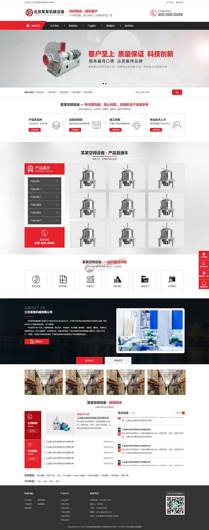 (PC+WAP)营销型压缩机离心风机网站pbootcms模板 红色机械设备网站源码下载