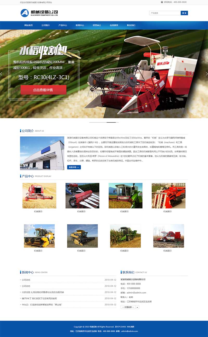 PbootCMS内核开发的网站模板,该模板适用于农业机械设备网站、水稻玉米收割机网站等企业,当然其他行业也可以做,只需要把文字图片换成其他行业的即可;