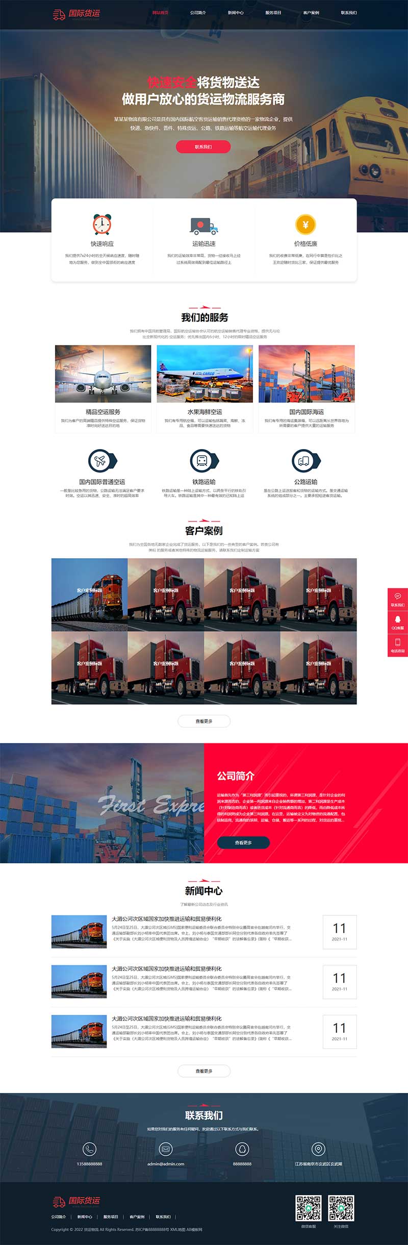 (自适应手机端)快递物流公司pbootcms网站模板 html响应式快递货运网站源码下载