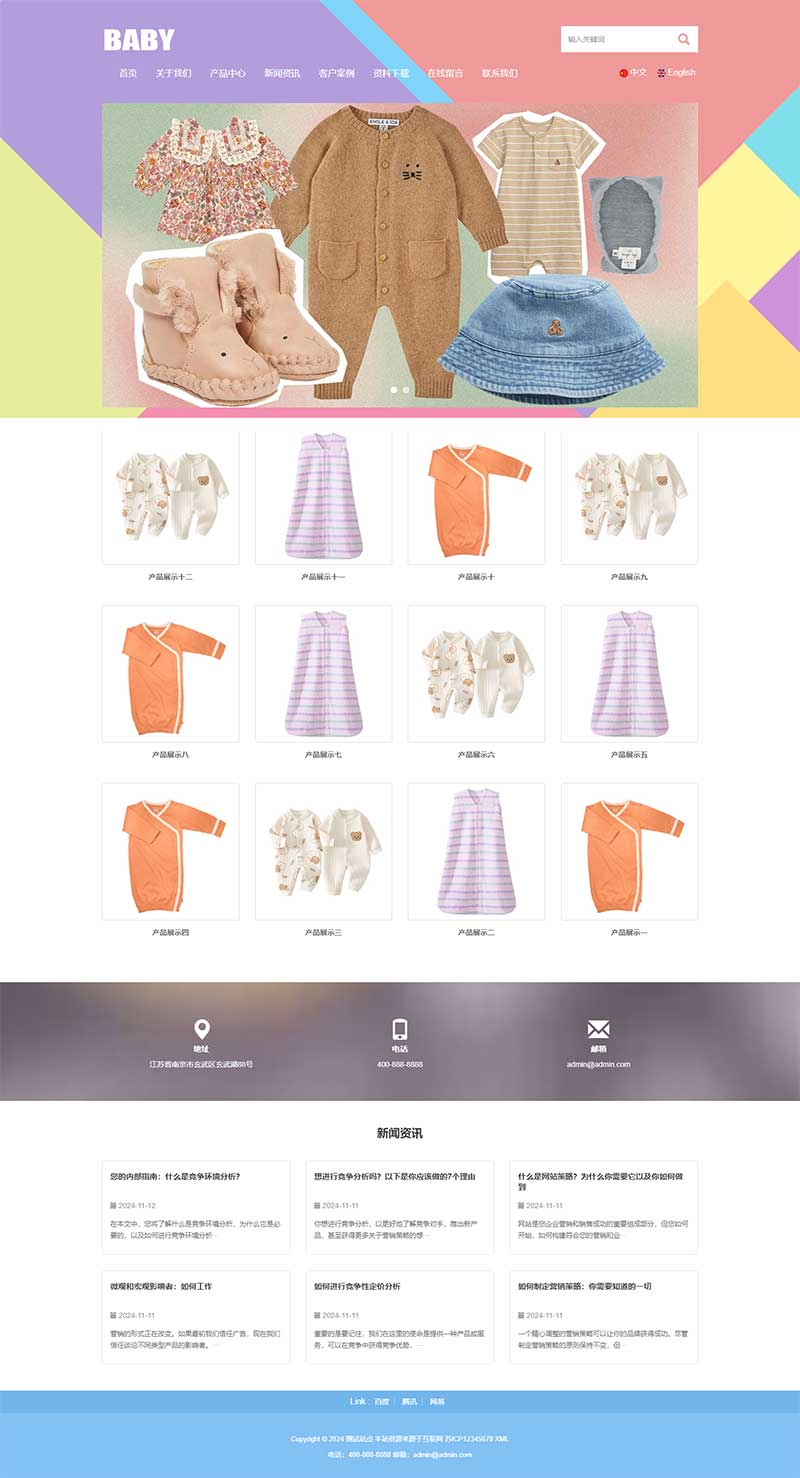 PbootCMS内核开发的网站模板,该模板适用于童装网站、中英文双语网站等企业,当然其他行业也可以做,只需要把文字图片换成其他行业的即可;